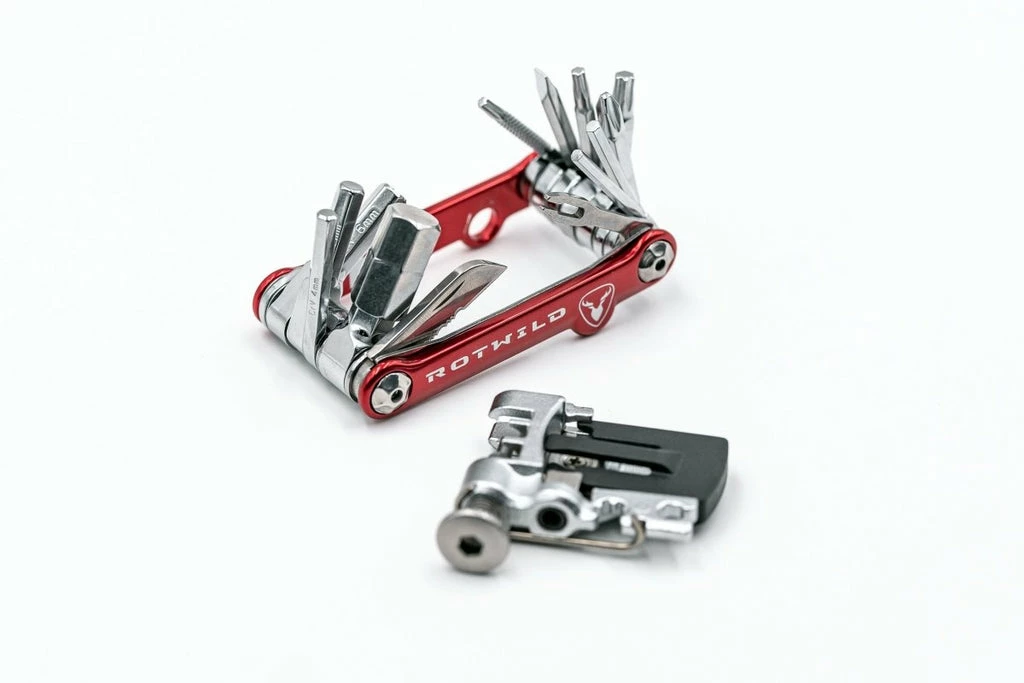 Präzisions-Minitool im exklusiven ROTWILD Design in Profi-Qualität mit Tubeless-Tools, das sich mit 30 Funktionen in einem geschmiedetem Aluminiumkörper perfekt für jede Reparatur auf der Straße oder dem Trail eignet. Der Kettennieter* und das einzigartige Kettenschlosswerkzeug lassen sich für besseres Handling vom Mini PT30 abnehmen. Inklusive Neoprentasche mit ROTWILD Emblem.