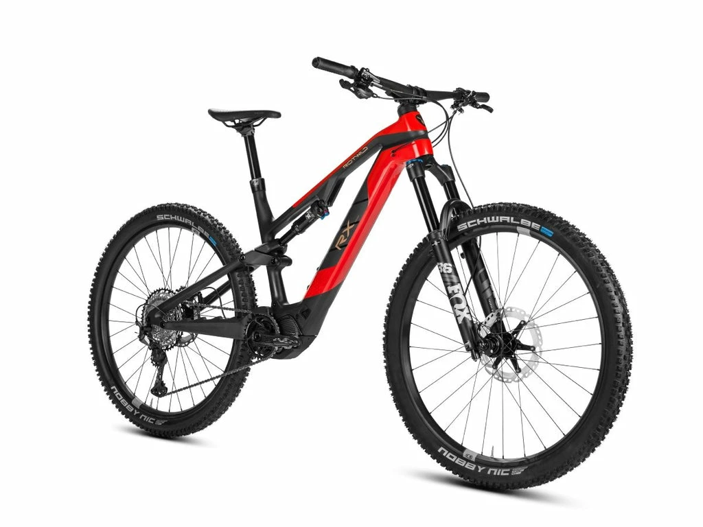 Verbaut wurde die neueste Generation Elektromotoren von Shimano, der EP8. Er belastet die Waage mit nur 2.500g, bietet dabei satte 85 Nm und 50% weniger Tretwiderstand – eine neue Benchmark in puncto Bauraum und Gewicht. In Kombination mit dem 375 Wh Akku präsentiert sich das R.X375 als außergewöhnlich leichtes E-MTB, spielerisch im Handling, überlegen auf dem Singletrail. Maßgeblich daran beteiligt ist der handgefertigte Vollcarbon-Rahmen aus Hochmodul-Fasern (HM): mit exzellenten Steifigkeitswerten und geringem Gewicht bildet er die Basis für spektakulären Fahrspaß.