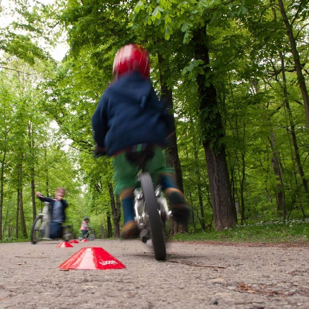 Mit dem woom Trainingsset könnt ihr euren Kindern schnell und flexibel einen kleinen Parcours aufbauen. Slalom, Ausweichmanöver oder auch Geländeübungen sind schnell erstellt. Den Kindern wird spielerisch und mit viel Spaß Fahrtechnik und Kontrolle beim Radfahren vermittelt. Natürlich kann man sie auch als Torpfosten verwenden.